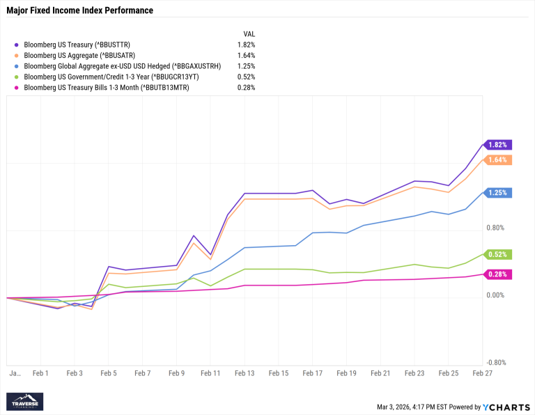 Overall, February marked a reversal from the more subdued environment seen in January, with longer‑duration Treasuries regaining momentum and broad fixed income delivering more uniform strength. The combination of stabilizing rate expectations and improving global monetary alignment supported performance across the curve, suggesting a more constructive backdrop for diversified bond allocations heading into spring.